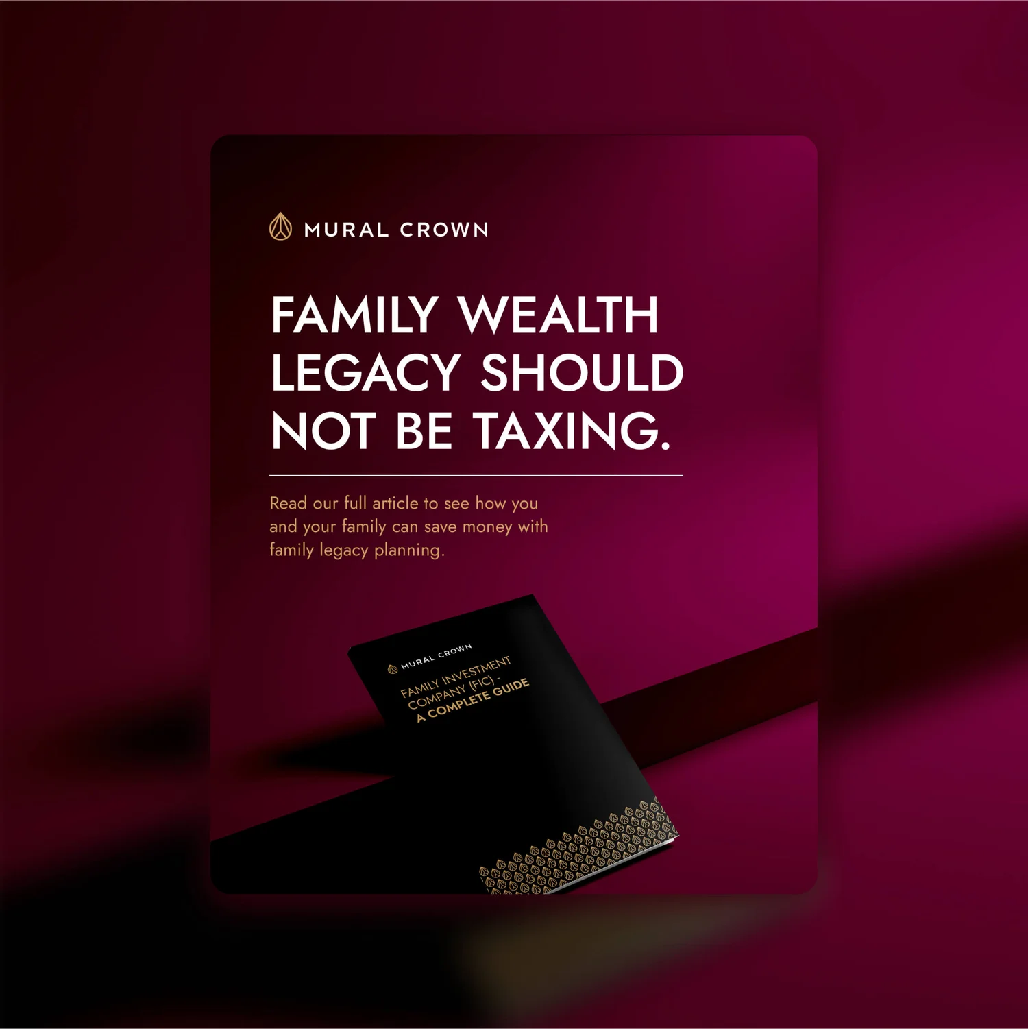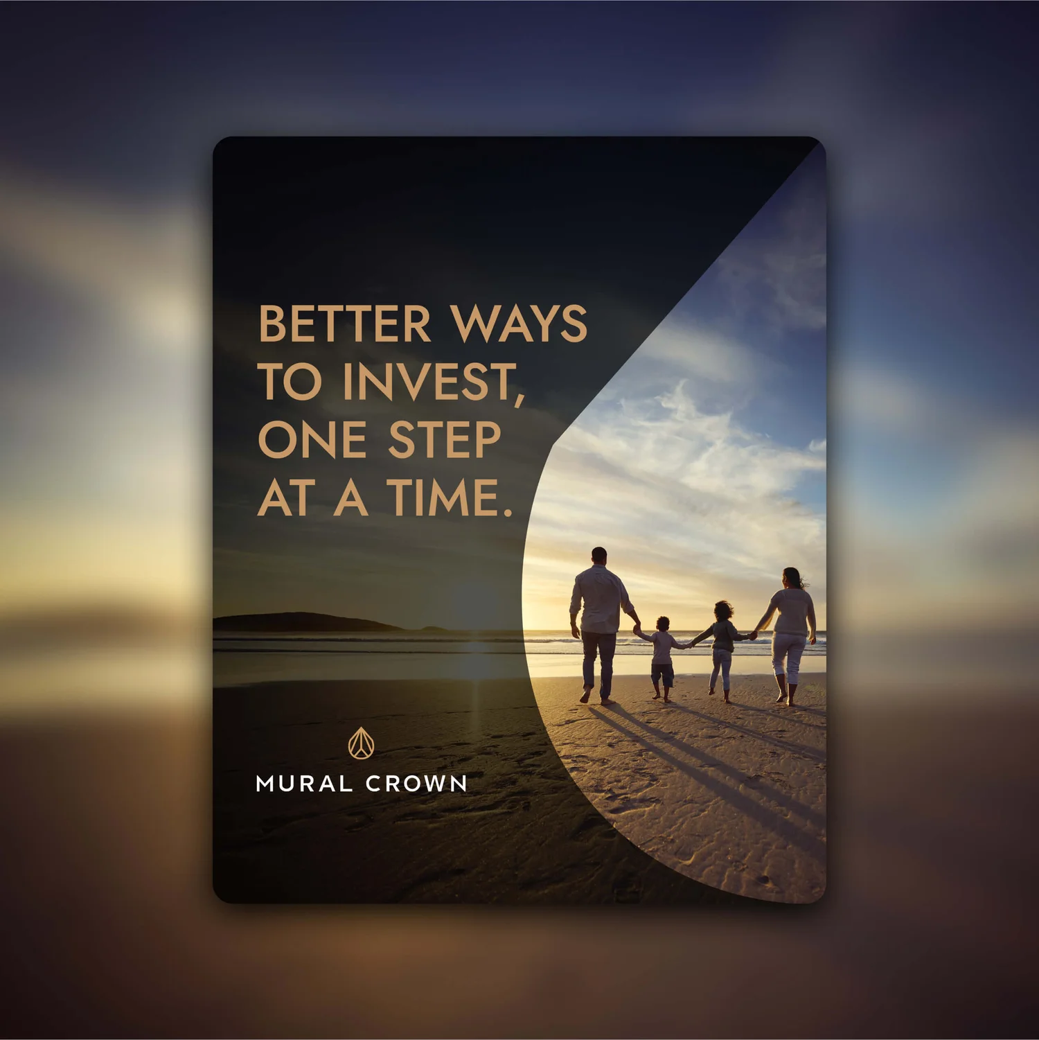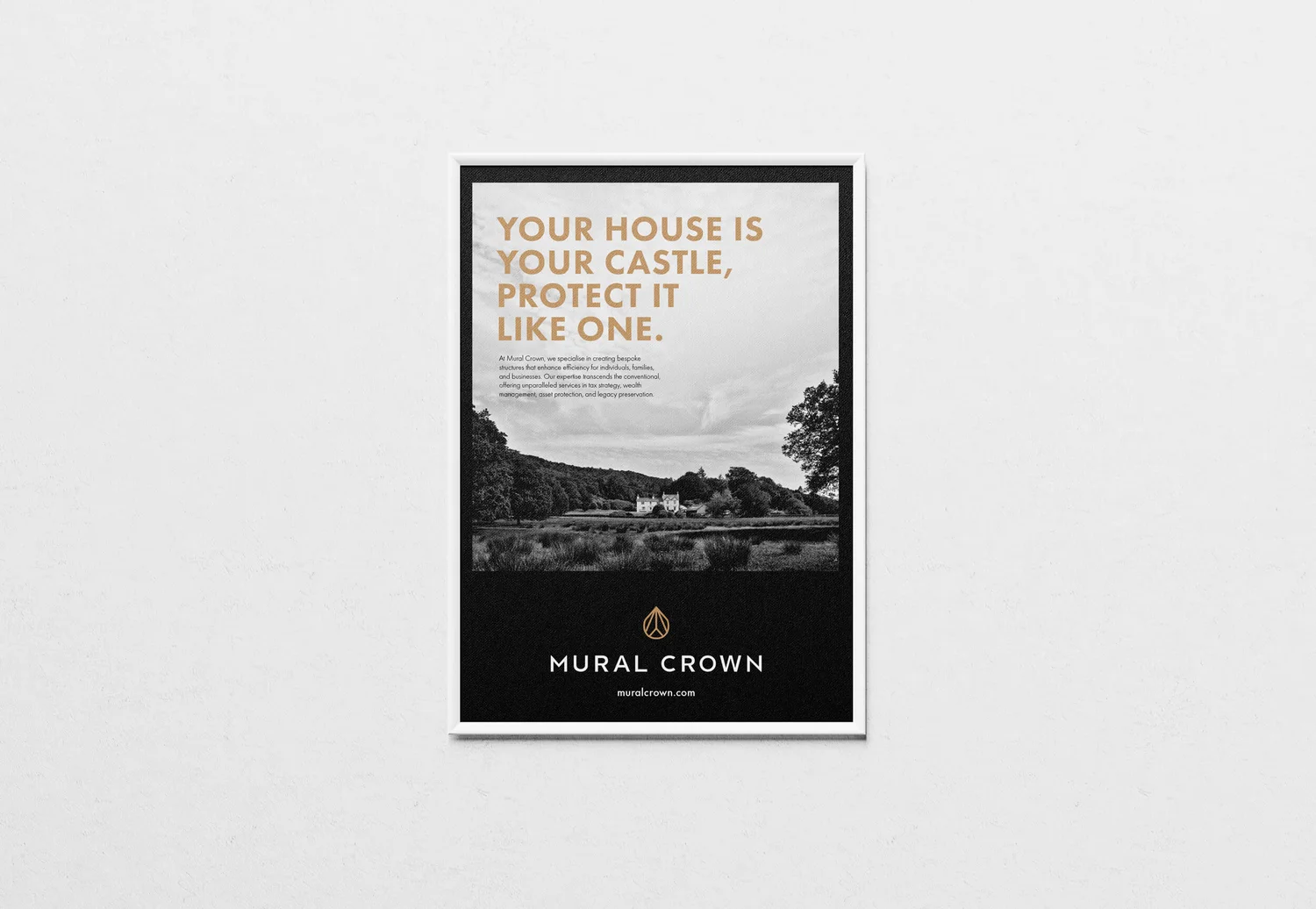 The challenge was to capture the modern, discreet confidence of Mural Crown’s offer. It needed to feel timeless and trustworthy but still bring something original to a space often filled with familiar financial tropes.